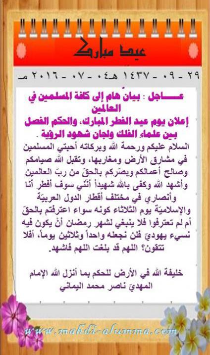 أخوكم الإمام المهديّ ناصر محمد اليماني .